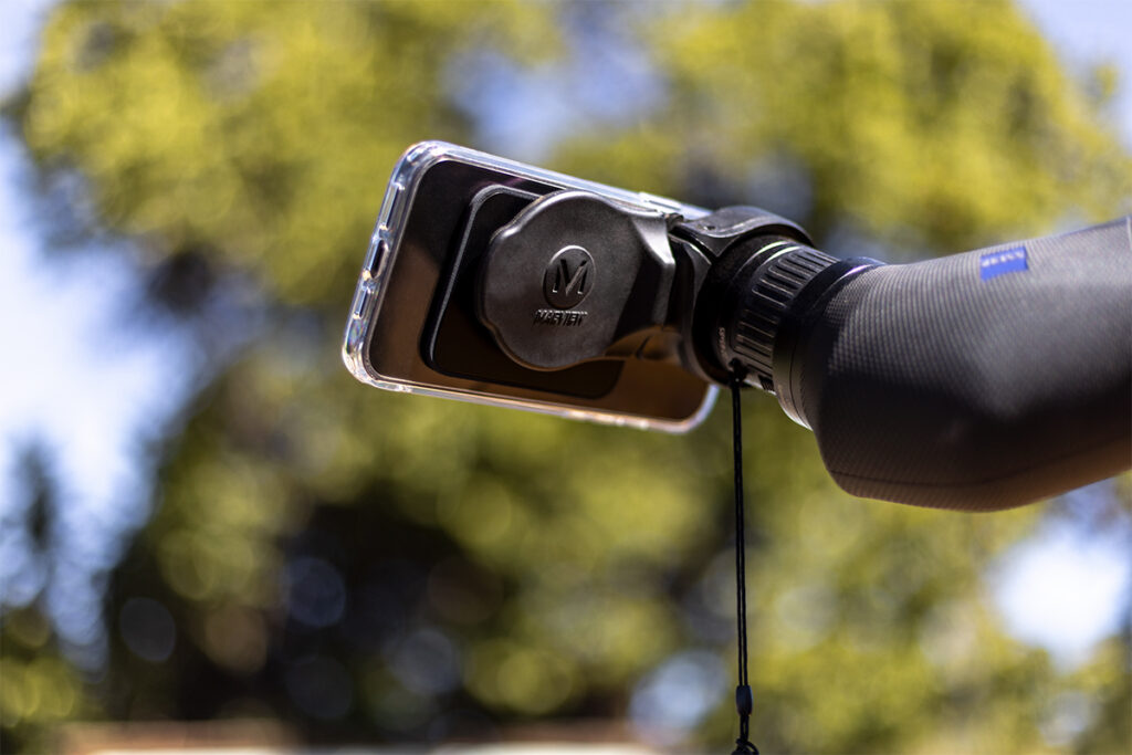 The MAGVIEW MagSafe Phone Plate utilizes the powerful magnets in MagSafe-enabled iPhones to attach a thin stainless-steel plate allowing users to instantly and securely attach their phone to MAGVIEW digiscoping systems. Whether you’re a seasoned birdwatcher, a dedicated hunter, or a passionate wildlife photographer, the new MagSafe plate will transform your digiscoping experience.